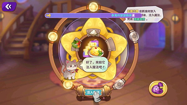 5、食材放置完成后,点击“注入魔法”,即可成功完成菜谱制作;