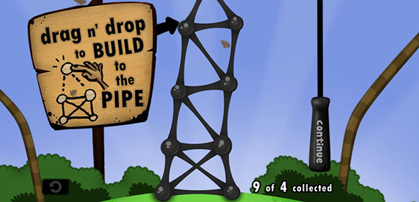 在空白区域单击制造噪音,引导所有粘粘球聚集至左侧,使管道自然下垂完成连接。