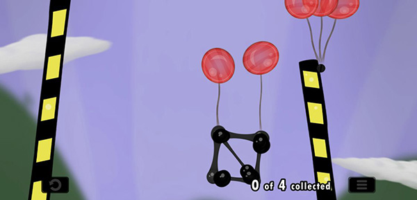 一边用气球吊起,一边持续向上堆叠结构。若最终高度未超过插有木牌的云层,则需重来。过关前可短暂释放气球让结构倾倒,再迅速重新粘上以防坠毁。
