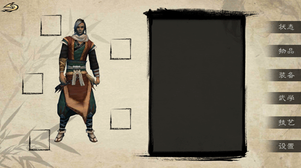 4、随时可通过界面查看角色状态、物品背包、装备配置及已习得的武学技能;