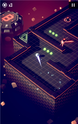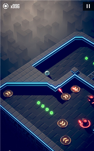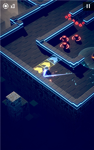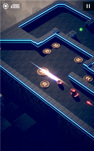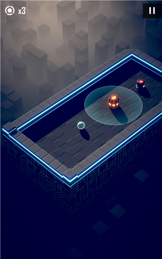 4、护盾球手感出色,但需注意:护盾需通过撞墙激活,且仅能抵挡一次伤害(除非中途进行划屏操作)。拥有护盾时,碰撞子弹不会改变轨迹,碰撞陷阱墙则会反弹。但对持续性伤害装置(如慢速旋转刺桩、地刺)无效。在反弹模式中,因护盾由撞墙触发,故持有护盾的小球可直接正面击杀敌人,无需犹豫。此外,进入子弹时间时护盾不会消失,仅在执行转向操作后才会解除。只要护盾未消失,即使以子弹时间流速移动,也能成功击杀带护盾的敌人。