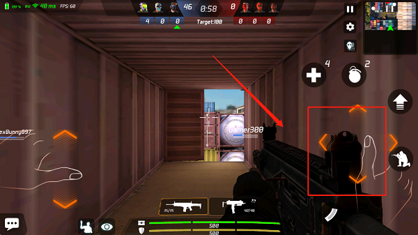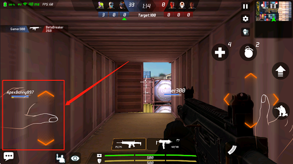3、通过滑动屏幕控制角色瞄准方向,精准锁定敌人位置。