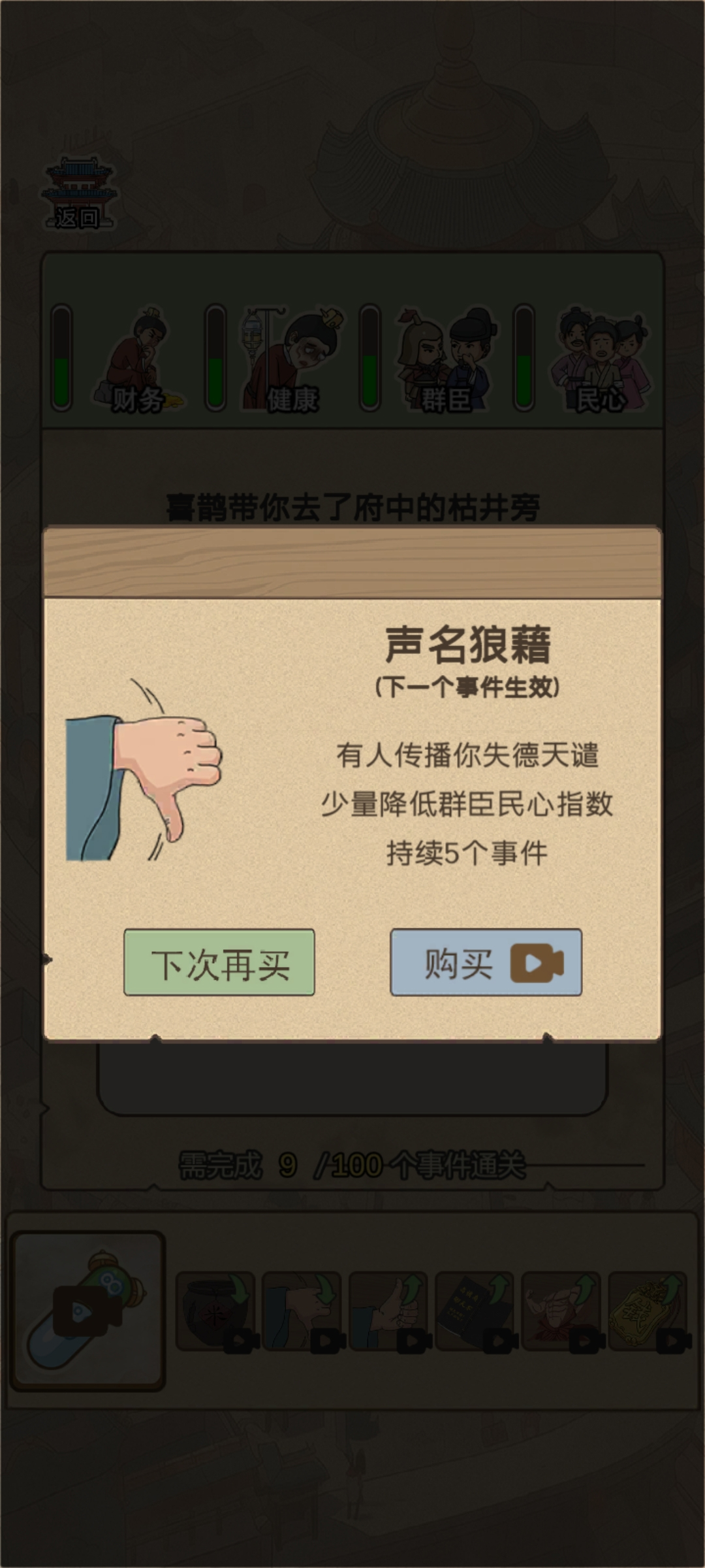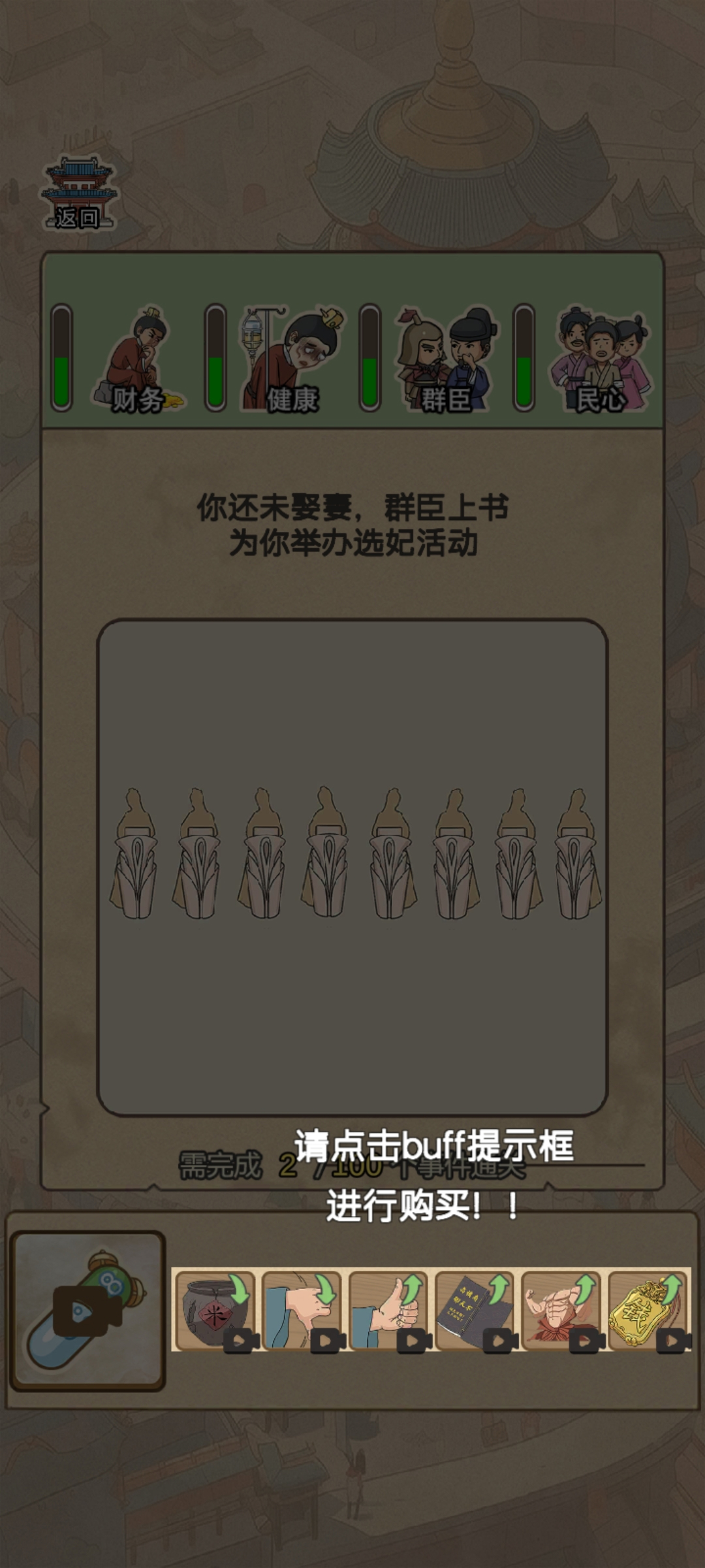3、完成全部100个事件,才能成功通关,解锁最终结局。