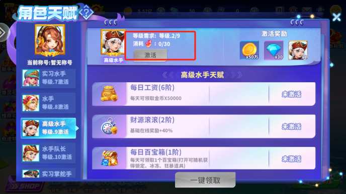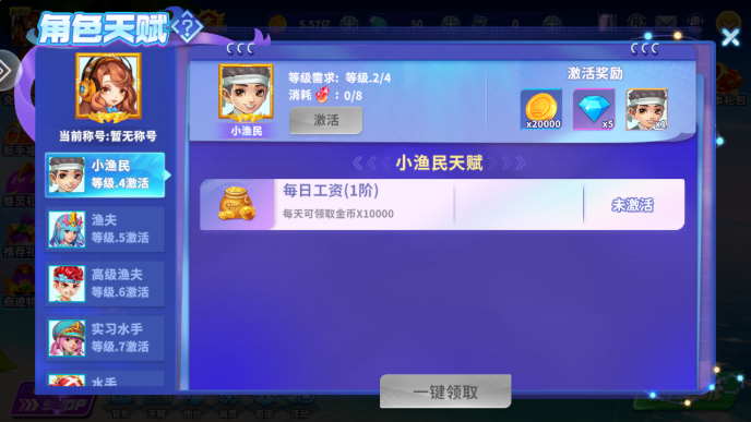 姚记捕鱼天赋怎么升级