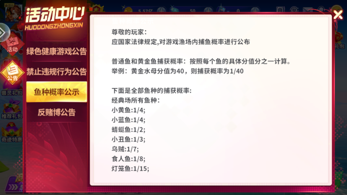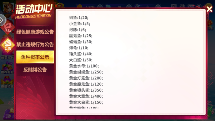 1、这里也是给大家看看活动中心里给出的鱼种概率,大家也可以自己找到看看