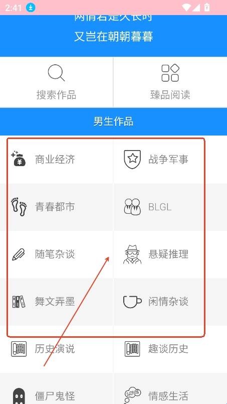 3、上方搜索框输入关键词,作品等,可以直接检索喜欢的小说内容。