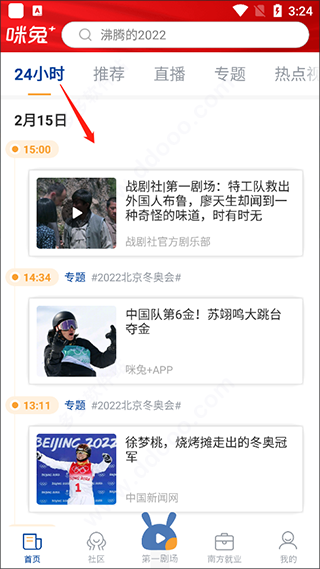 3、点击“24小时”就可以看到软件中最独特的全天24小时实时新闻资讯提供