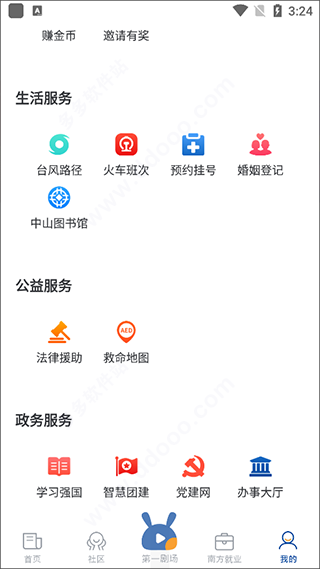 7、最后在“我的”模块功能中还提供了各种生活服务、公益服务、政务服务等功能以供使用
