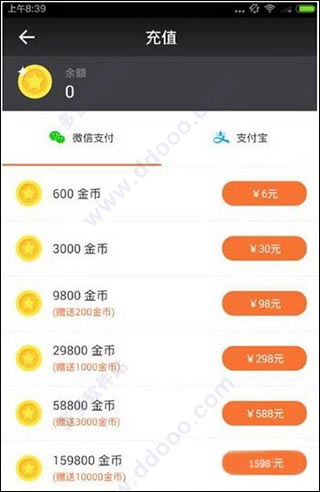 在一直播中,充值单位为金币,金币与人民币的兑换比例为100:1,即6元可充值600金币。
