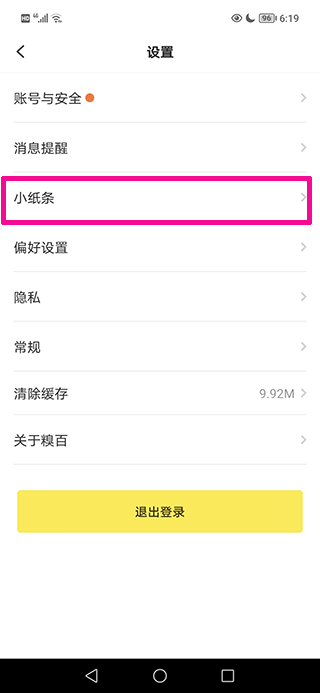 2、在设置页面中找到并点击“小纸条”选项;