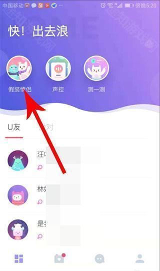 1、来到uki app主页面后,点击左上角的"假装情侣"。