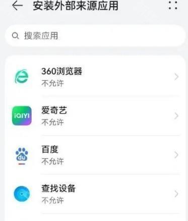 4、找到你用于下载应用的来源(例如百度),点击并开启“允许安装应用”权限即可。